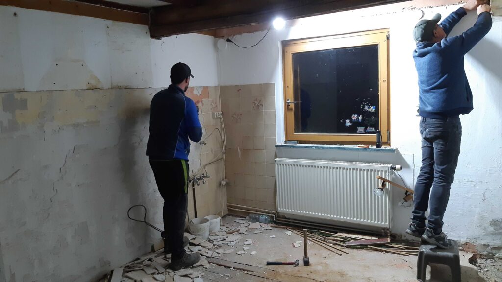 Das waren die gestrigen (Nacht-) Arbeiten um die schadhafte Stelle beim Strom freizulegen. Tatkräftig waren: Jan, Martin, Moritz, Klaus und Tim. Leider nicht das einzige Problem was während der Sanierungsarbeiten zusätzlich aufgekommen ist.